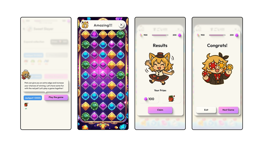 - Pets (microavatary zwierzaków) – specjalne zwierzaki, które pozwalają rozpocząć grę z wyższą stawką wygranej, wprowadzając dodatkowy element strategii i kolekcjonowania.